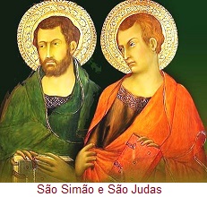 S. SIMÃO e S.JUDAS (séc.I). Dois dos Apóstolos de Jesus, associados na liturgia tal como na lista dos Doze que consta nos evangelhos. Simão, chamado de “o zelote” e Judas, de apelido Tadeu, terão sido mortos depois do Pentecostes, numa emboscada na Pérsia. A tradição também refere que S.Simão terá sido serrado vivo e S. Judas terá sido decapitado com uma acha.