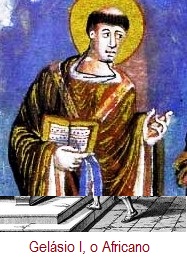 S. GELÁSIO I, O AFRICANO (496). Originário da África do Norte foi eleito papa em 492. Embora tenha sido Papa apenas durante 4,5 anos, exerceu uma profunda influência na política, liturgia e disciplina eclesiais. Reafirmou a superioridade do espiritual sobre o material, e a primazia da cátedra de Roma sobre a cátedra de Constantinopla. Muitos dos seus decretos foram incorporados no Direito Canónico. Foi chamado “Pai dos pobres”, por nunca ter hesitado em recorrer às riquezas da Igreja em tempos de fome, de epidemias de peste ou simplesmente de pobreza.