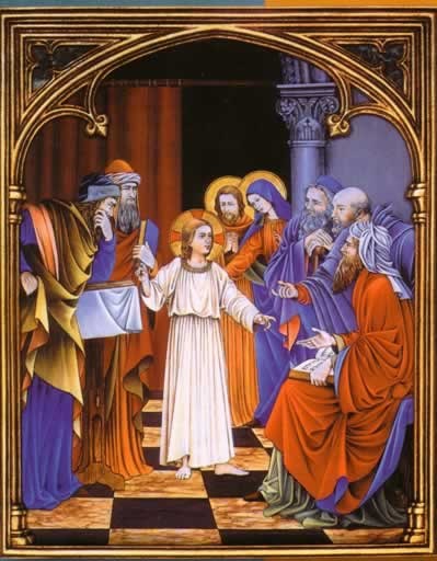 Os pais de Jesus iam todos os anos a Jerusalém, pela festa da Páscoa. Quando Ele chegou aos doze anos, subiram até lá, segundo o costume da festa. Terminados esses dias, regressaram a casa e o menino ficou em Jerusalém, sem que os pais o soubessem. Pensando que Ele se encontrava na caravana, fizeram um dia de viagem e começaram a procurá-lo entre os parentes e conhecidos. Não o tendo encontrado, voltaram a Jerusalém, à sua procura.