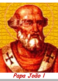 S. JOÃO I, Papa (526). Morreu mártir na cadeia, em Ravena, por causa das guerras religiosas entre católicos e arianos, quando desagradou ao rei godo Teodorico, que o tinha enviado como seu delegado ao imperador Justino de Constantinopla.