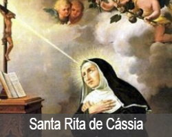 SANTA RITA DE CÁSSIA (1381-1457). Animada de um profundo sentimento de perdão e duma grande paciência perante o sofrimento, esta mãe, viúva e religiosa Agostinha estigmatizada na testa, de Cássia, Itália, é venerada como padroeira das causas perdidas e desesperadas. Foi canonizada pelo papa Leão XIII, em 1900.