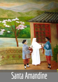 STA. AMANDINE (1872-1900). Religiosa franciscana belga, enfermeira em Marselha, foi enviada para a China, ao serviço dum hospital e dum orfanato, na época da guerra dos boxers. Era famosa pela sua bondade e alegria de viver. Decapitada em 1900, um ano após a sua chegada à China. Tinha 28 anos. Foi canonizada por S. João-Paulo ll (2000).