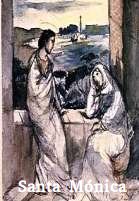 STA. MÓNICA (332-87). Mãe de STO Agostinho por cuja conversão chorou longos anos. As lágrimas de Mónica testemunham o desejo de dar a Vida divina àquele a quem tinha dado a vida, seu filho, futuro STO Agostinho. Feliz é ela, a serva dO Senhor “cuja carne me gerou no tempo e o coração para a eternidade” (Confissões).