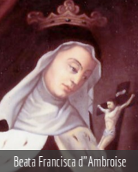 BTA. FRANCISCA d’AMBOlSE(1427-85). Casou aos 15 anos com Pedro II, duque da Bretanha. Viúva (1457), fez-se carmelita. Foi canonizada pelo papa Pio IX, 1863.