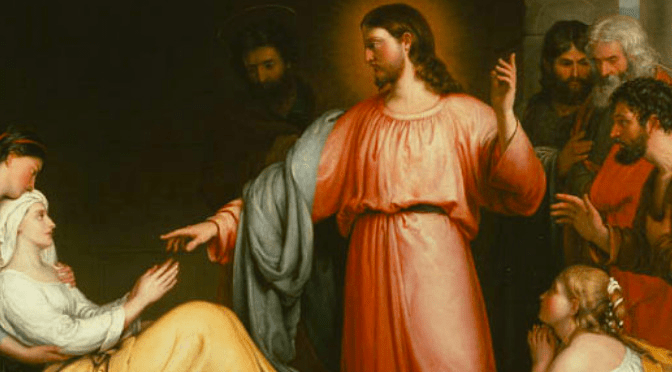 Naquele tempo, Jesus saiu da sinagoga e entrou em casa de Simão. A sogra de Simão estava com febre muito alta e pediram a Jesus que fizesse alguma coisa por ela. Jesus, aproximando-Se da sua cabeceira, falou imperiosamente à febre, e a febre deixou-a. Ela levantou-se e começou logo a servi-los. Ao pôr do sol, todos os que tinham doentes com diversas enfermidades traziam-nos a Jesus e Jesus, impondo as mãos sobre cada um deles, curava-os. De muitos deles saíam demónios, que diziam em altos gritos: «Tu és o Filho de Deus». Mas Jesus, em tom severo, impedia-os de falar, porque sabiam que Ele era o Messias. Ao romper do dia, Jesus dirigiu-Se a um lugar deserto. A multidão foi à procura d’Ele e, tendo-O encontrado, queria retê-l’O, para que não os deixasse. Mas Jesus disse-lhes: «Tenho de ir também às outras cidades anunciar a boa nova do reino de Deus, porque para isto fui enviado». E pregava pelas sinagogas da Judeia.