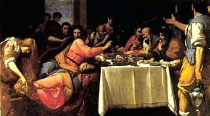 Naquele tempo, um fariseu convidou Jesus para comer com ele. Jesus entrou em casa do fariseu e tomou lugar à mesa. Então, uma mulher – uma pecadora que vivia na cidade – ao saber que Ele estava à mesa em casa do fariseu, trouxe um vaso de alabastro com perfume; pôs-se atrás de Jesus e, chorando muito, banhava-Lhe os pés com as lágrimas e enxugava-lhos com os cabelos, beijava-os e ungia-os com o perfume. Ao ver isto, o fariseu que tinha convidado Jesus pensou consigo: «Se este homem fosse profeta, saberia que a mulher que O toca é uma pecadora». Jesus tomou a palavra e disse-lhe: «Simão, tenho uma coisa a dizer-te». Ele respondeu: «Fala, Mestre». Jesus continuou: «Certo credor tinha dois devedores: um devia-lhe quinhentos denários e o outro cinquenta. Como não tinham com que pagar, perdoou a ambos. Qual deles ficará mais seu amigo?». Respondeu Simão: «Aquele – suponho eu – a quem mais perdoou». Disse-lhe Jesus: «Julgaste bem». E voltando-Se para a mulher, disse a Simão: «Vês esta mulher? Entrei em tua casa e não Me deste água para os pés; mas ela banhou-Me os pés com as lágrimas e enxugou-os com os cabelos. Não Me deste o ósculo; mas ela, desde que entrei, não cessou de beijar-Me os pés. Não Me derramaste óleo na cabeça; mas ela ungiu-Me os pés com perfume. Por isso te digo: São-lhe perdoados os seus muitos pecados, porque muito amou; mas aquele a quem pouco se perdoa, pouco ama». Depois disse à mulher: «Os teus pecados estão perdoados». Então os convivas começaram a dizer entre si: «Quem é este homem, que até perdoa os pecados?». Mas Jesus disse à mulher: «A tua fé te salvou. Vai em paz».