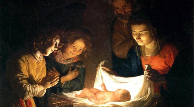 Naqueles dias, saiu um decreto de César Augusto, para ser recenseada toda a terra. Este primeiro recenseamento efectuou-se quando Quirino era governador da Síria. Todos se foram recensear, cada um à sua cidade. José subiu também da Galileia, da cidade de Nazaré, à Judeia, à cidade de David, chamada Belém, por ser da casa e da descendência de David, a fim de se recensear com Maria, sua esposa, que estava para ser mãe. Enquanto ali se encontravam, chegou o dia de ela dar à luz e teve o seu Filho primogénito. Envolveu-O em panos e deitou-O numa manjedoura, porque não havia lugar para eles na hospedaria. Havia naquela região uns pastores que viviam nos campos e guardavam de noite os rebanhos. O Anjo do Senhor aproximou-se deles e a glória do Senhor cercou-os de luz; e eles tiveram grande medo. Disse-lhes o Anjo: «Não temais, porque vos anuncio uma grande alegria para todo o povo: nasceu-vos hoje, na cidade de David, um Salvador, que é Cristo Senhor. Isto vos servirá de sinal: encontrareis um Menino recém-nascido, envolto em panos e deitado numa manjedoura». Imediatamente juntou-se ao Anjo uma multidão do exército celeste, que louvava a Deus, dizendo: «Glória a Deus nas alturas e paz na terra aos homens por Ele amados».