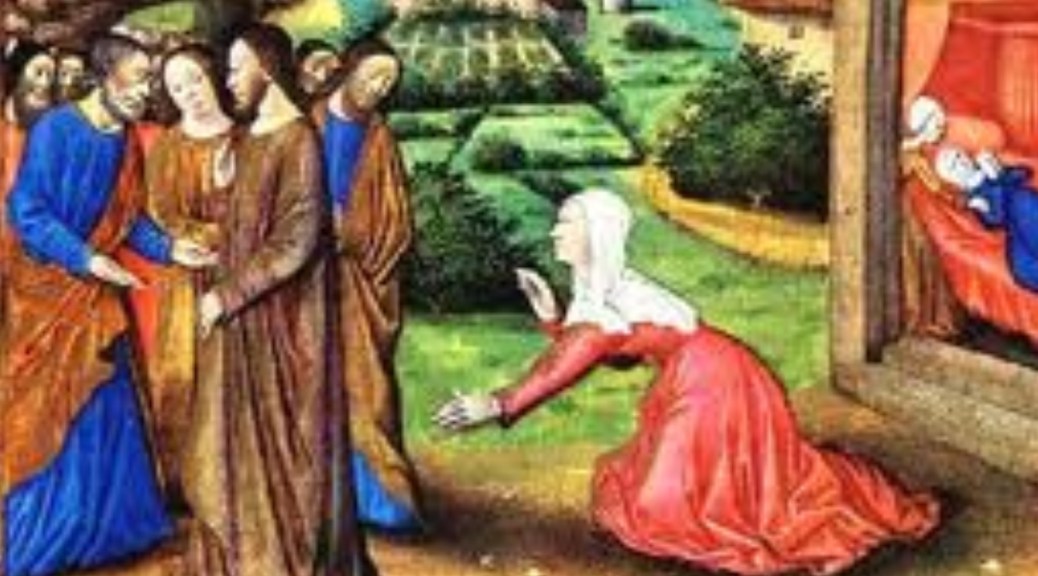 Naquele tempo, Jesus retirou-Se para os lados de Tiro e Sidónia. Então, uma mulher cananeia, vinda daqueles arredores, começou a gritar: «Senhor, Filho de David, tem compaixão de mim. Minha filha está cruelmente atormentada por um demónio». Mas Jesus não lhe respondeu uma palavra. Os discípulos aproximaram-se e pediram-Lhe: «Atende-a, porque ela vem a gritar atrás de nós». Jesus respondeu: «Não fui enviado senão às ovelhas perdidas da casa de Israel». Mas a mulher veio prostrar-se diante d’Ele, dizendo: «Socorre-me, Senhor». Ele respondeu: «Não é justo que se tome o pão dos filhos para o lançar aos cachorrinhos». Mas ela insistiu: «É verdade, Senhor; mas também os cachorrinhos comem das migalhas que caem da mesa de seus donos». Então Jesus respondeu-lhe: «Mulher, é grande a tua fé. Faça-se como desejas». E, a partir daquele momento, a sua filha ficou curada.