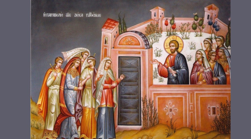 Naquele tempo, disse Jesus aos seus discípulos a seguinte parábola: «O reino dos Céus pode comparar-se a dez virgens, que, tomando as suas lâmpadas, foram ao encontro do esposo. Cinco eram insensatas e cinco eram prudentes. As insensatas, ao tomarem as suas lâmpadas, não levaram azeite consigo, enquanto as prudentes, com as lâmpadas, levaram azeite nas almotolias. Como o esposo se demorava, começaram todas a dormitar e adormeceram. No meio da noite ouviu-se um brado: ‘Aí vem o esposo; ide ao seu encontro’. Então, as virgens levantaram-se todas e começaram a preparar as lâmpadas. As insensatas disseram às prudentes: ‘Dai-nos do vosso azeite, que as nossas lâmpadas estão a apagar-se’. Mas as prudentes responderam: ‘Talvez não chegue para nós e para vós. Ide antes comprá-lo aos vendedores’. Mas, enquanto foram comprá-lo, chegou o esposo: as que estavam preparadas entraram com ele para o banquete nupcial; e a porta fechou-se. Mais tarde, chegaram também as outras virgens e disseram: ‘Senhor, senhor, abre-nos a porta’. Mas ele respondeu: ‘Em verdade vos digo: Não vos conheço’. Portanto, vigiai, porque não sabeis o dia nem a hora».