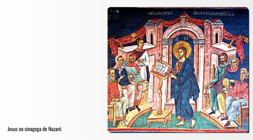 Naquele tempo, Jesus voltou para a Galileia, com a força do Espírito, e a sua fama propagou-se por toda a região. Ensinava nas sinagogas e era elogiado por todos. Foi então a Nazaré, onde Se tinha criado. Segundo o seu costume, entrou na sinagoga a um sábado e levantou-Se para fazer a leitura. Entregaram-Lhe o livro do profeta Isaías e, ao abrir o livro, encontrou a passagem em que estava escrito: «O Espírito do Senhor está sobre mim, porque Ele me ungiu para anunciar a boa nova aos pobres; Ele Me enviou a proclamar a redenção aos cativos e a vista aos cegos, a restituir a liberdade aos opri¬midos e a proclamar o ano da graça do Senhor». Depois enrolou o livro, entregou-o ao ajudante e sentou-Se. Estavam fixos em Jesus os olhos de toda a sinagoga. Começou então a dizer-lhes: «Cumpriu-se hoje mesmo esta passagem da Escritura que acabais de ouvir». Todos davam testemunho em seu favor e se admiravam da mensagem da graça que saía da sua boca.