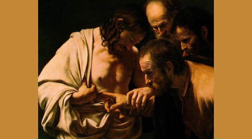 Na tarde daquele dia, o primeiro da semana, estando fechadas as portas da casa onde os discípulos se encontravam, com medo dos judeus, veio Jesus, apresentou-Se no meio deles e disse-lhes: «A paz esteja convosco». Dito isto, mostrou-lhes as mãos e o lado. Os discípulos ficaram cheios de alegria ao verem o Senhor. Jesus disse-lhes de novo: «A paz esteja convosco. Assim como o Pai Me enviou, também Eu vos envio a vós». Dito isto, soprou sobre eles e disse-lhes: «Recebei o Espírito Santo: àqueles a quem perdoardes os pecados ser-lhes-ão perdoados; e àqueles a quem os retiverdes ser-lhes-ão retidos». Tomé, um dos Doze, chamado Dídimo, não estava com eles quando veio Jesus. Disseram-lhe os outros discípulos: «Vimos o Senhor». Mas ele respondeu-lhes: «Se não vir nas suas mãos o sinal dos cravos, se não meter o dedo no lugar dos cravos e a mão no seu lado, não acreditarei». Oito dias depois, estavam os discípulos outra vez em casa e Tomé com eles. Veio Jesus, estando as portas fechadas, apresentou-Se no meio deles e disse: «A paz esteja convosco». Depois disse a Tomé: «Põe aqui o teu dedo e vê as minhas mãos; aproxima a tua mão e mete-a no meu lado; e não sejas incrédulo, mas crente». Tomé respondeu-Lhe: «Meu Senhor e meu Deus!». Disse-lhe Jesus: «Porque Me viste acreditaste: felizes os que acreditam sem terem visto». Muitos outros milagres fez Jesus na presença dos seus discípulos, que não estão escritos neste livro. Estes, porém, foram escritos para acreditardes que Jesus é o Messias, o Filho de Deus, e para que, acreditando, tenhais a vida em seu nome.