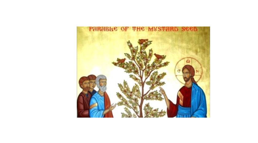 Naquele tempo, disse Jesus: «A que é semelhante o reino de Deus, a que hei-de compará-lo? É semelhante ao grão de mostarda que um homem tomou e lançou na sua horta. Cresceu, tornou-se árvore e as aves do céu vieram abrigar-se nos seus ramos». Jesus disse ainda: «A que hei-de comparar o reino de Deus? É semelhante ao fermento que uma mulher tomou e misturou em três medidas de farinha, até ficar tudo levedado».