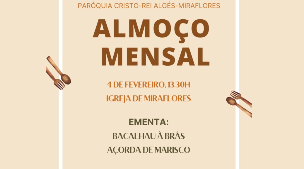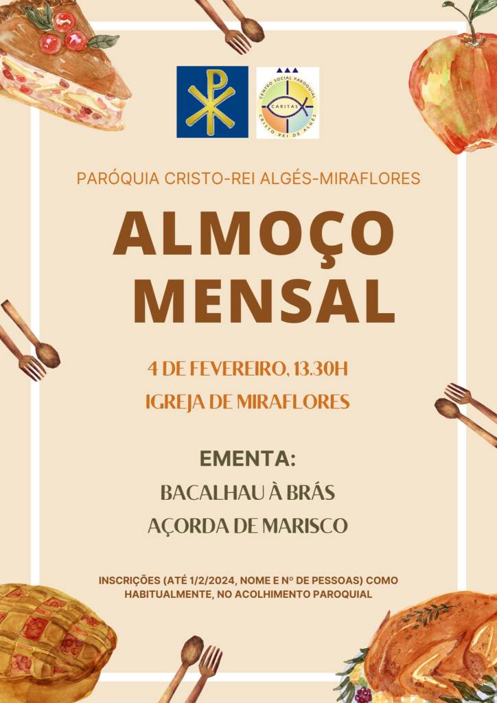 No intuito de partilhar cada vez mais na comunidade paroquial inteira as riquezas da vivência de fé e a alegria da missão, o almoço do primeiro Domingo de Fevereiro, dia 4, é preparado pelos voluntários e equipa do Centro Social Paroquial / Centro de Convívio.