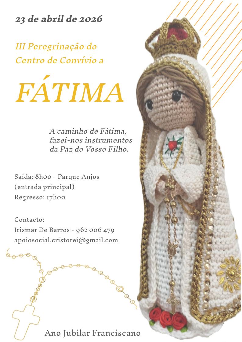 O Centro Social Cristo Rei de Algés / Centro de Convívio, realiza uma Peregrinação ao Santuário de Nossa Senhora de Fátima no dia 23 de abril, com saída no Parque Anjos, às 8h00, aberta à comunidade, consoante os lugares disponíveis.