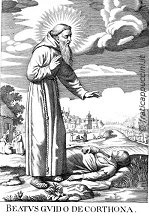 BTO. GUY VIGNOTELLI (1185-1245). O encontro com S. Francisco de Assis mudou a vida deste senhor de Cortona, na Itália: deu todos os seus bens aos pobres, ingressou na Ordem dos Franciscanos e fez-se eremita na gruta de uma ponte.