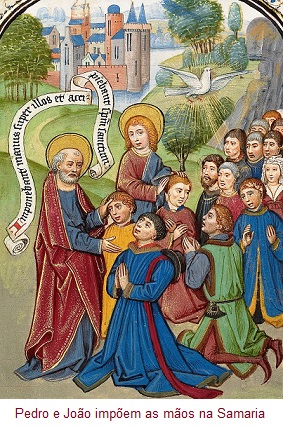 EVANGELIZAÇÃO DA SAMARIA (Act.8,5-8.14-17) E DO MUNDO (1 Pedro 3,15-18). O Espírito Santo esconde-se no nosso íntimo mais profundo. Ele é a fonte da vida e do amor. Ele habita-nos e dá-nos um novo sopro. Ele é a força que Cristo prometeu para podermos viver segundo o Seu Evangelho. Tal como os samaritanos da primeira leitura, representados na iluminura flamenga (Willem Vrelant 1481, activo 1454-1481, J. Paul Getty Museum, Califórnia), estejamos mais atentos à Sua presença nesta altura do ano em que muitos cristãos são crismados. Invoquemos a Sua vinda para que se renove a face da terra. Na Epístola, a injunção de Pedro é firme, fraterna e incontornável. Fala da esperança que temos em nós, e como devemos saber transmitir aos outros o sabor desse sal e vida que nos foi dada em abundância. Será na forma como formos, vivermos e servirmos que os nossos contemporâneos poderão descobrir – em nós e através de nós – o rosto d’Aquele que dá sentido à vida, o rosto resplandecente de Quem, pela Sua morte e ressurreição, fundamenta a nossa esperança e abre à humanidade inteira um caminho de salvação. O mundo tem necessidade de homens e mulheres que digam e gritem que, após a madrugada do túmulo vazio, as trevas deixaram de ter direito de cidadania na humanidade. Cristo estava morto, Cristo está agora ressuscitado e o mundo deve tornar-se naquilo que ainda não é : capaz de ver, capaz de reconhecer O Espírito da verdade.