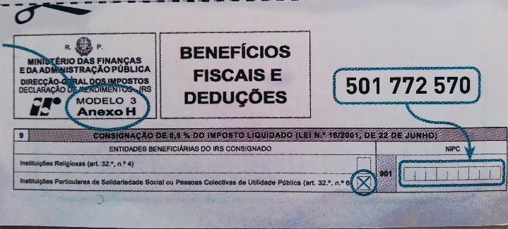 Basta indicar no modelo 3, nº 9, do Anexo H do IRS o NIPC do Centro Social Paroquial Cristo – Rei de Algés: 501 772 570.