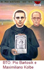 BeatoPioBartosikEMaximilianoKolbeBTO. PIO BARTOSIK(1891-1974). Jovem sacerdote franciscano polaco, aprisionado juntamente com Maximiliano Kolbe e 3 outros religiosos do Convento de Niepokalanówn. Morreu no campo de concentração de Auschwitz. Beatificado por S.João-Paulo II, 1999.