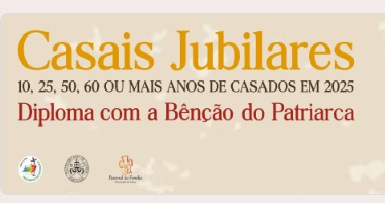 Os casais que têm matrimónio católico e já fizeram ou vão fazer 10, 25, 50, 60 ou mais anos de casados em 2025 estão convidados a comparecerem no dia 31 de maio, Dia Jubilar Diocesano, a uma missa campal no jardim em frente ao Casino do Estoril, a partir das 18h, para receberem a Bênção do Senhor Patriarca de Lisboa aos casais jubilares de 2025.