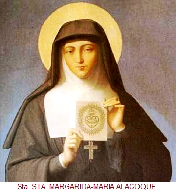 STA. MARGARIDA – MARIA ALACOQUE (1647-1690). Visitandina no Convento Paray-le-Monial. Apesar dos muitos obstáculos, ela respondeu ao pedido de Jesus para estabelecer e difundir a devoção ao Seu Sagrado Coração.