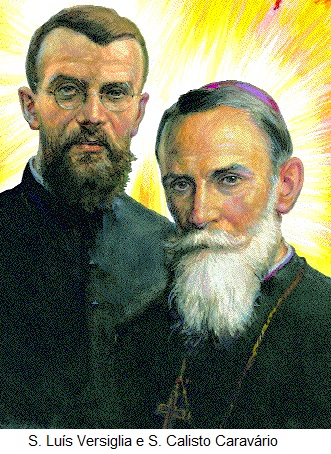 STOS. LUIS VERSIGLIA (1873-1930) e CALISTO CARAVÁRIO (1903-30). Bispo e sacerdote salesianos. Expulsos de Macau em 1910 quando da implantação da República os salesianos foram para Shiu Chow, 220 Kms a norte de Cantão, China, onde abriram escolas e seminários. Numa visita pastoral, Versíglia e Caravário, foram mortos por piratas quando defendiam 3 raparigas que levavam a casa. Beatificados (1983) e canonizados (2000) por João-Paulo II num grupo de 120 mártires da China, dizendo : “Este martírio realiza a visão profética de S. João Bosco que, ao sonhar com predilecção no Extremo Oriente para os seus filhos, falava de “cálices cheios de sangue” e anunciava frutos maravilhosos”.